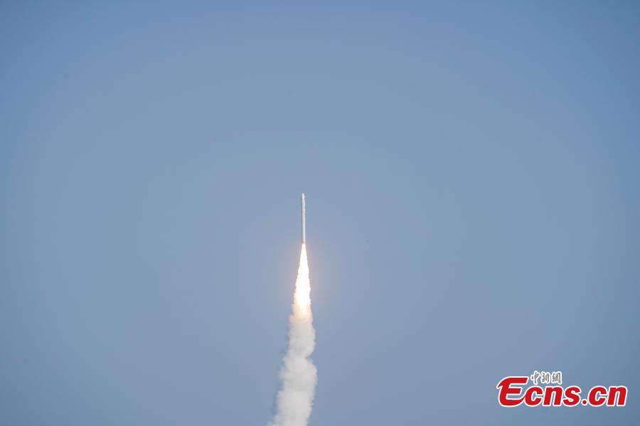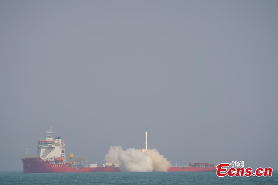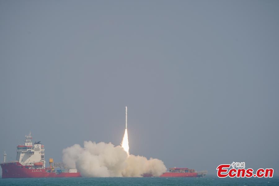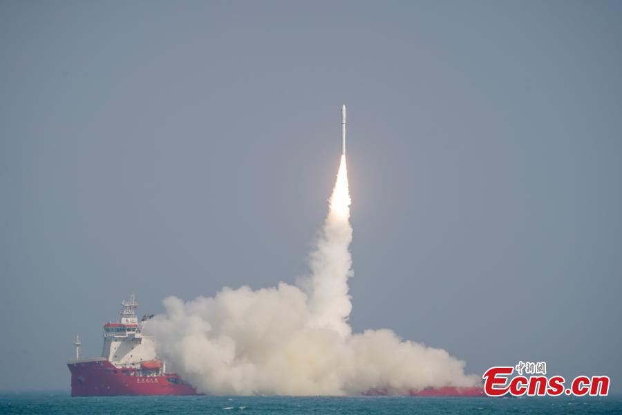 A CERES-1 carrier rocket carrying the Tianqi constellation including four satellites blasts off from the waters near east China's Shandong Province, May 19, 2025. (Photo provided to China News Service)