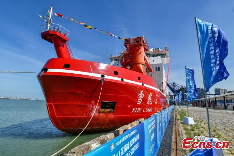 People visit Chinese research icebreaker Xuelong 2 at Xiuying Port in Haikou, south China's Hainan Province, June 2, 2025. (Photo: China News Service/Luo Yunfei)