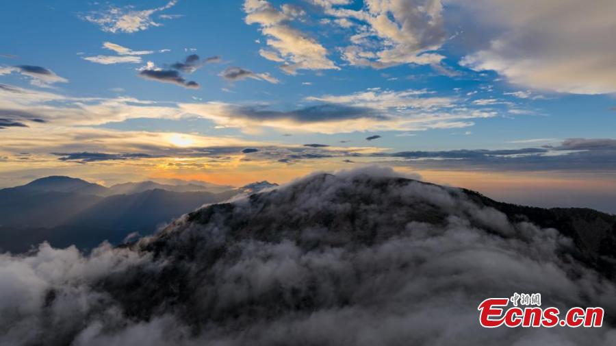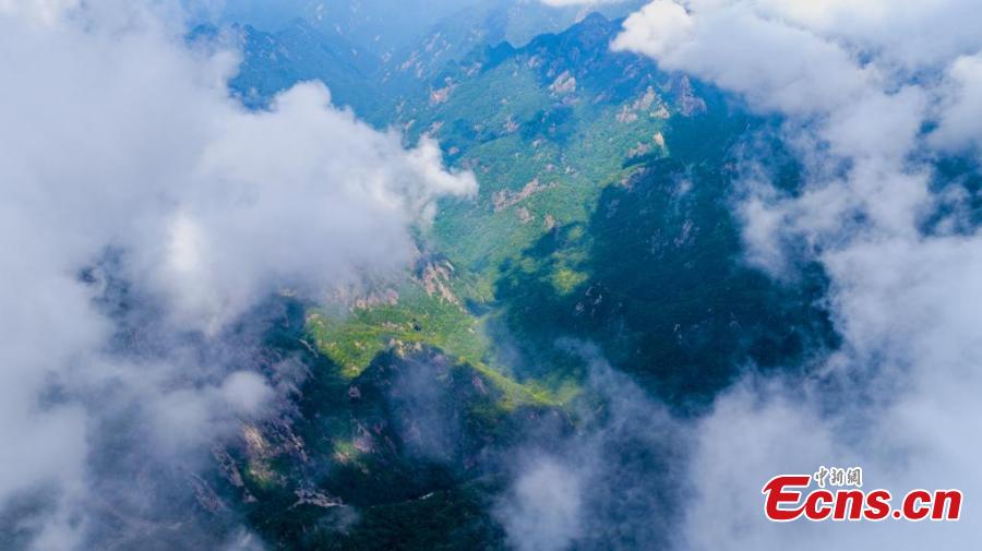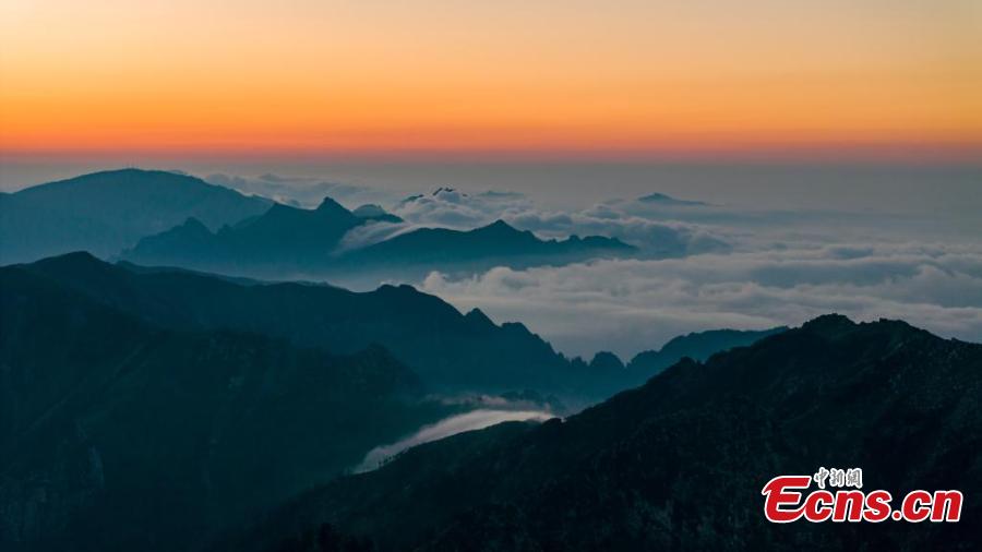 A sea of clouds floats on mountains at the Zhuque National Forest Park in Xi'an, northwest China's Shaanxi Province. (Photo provided to China News Service)