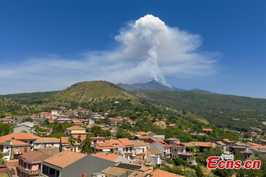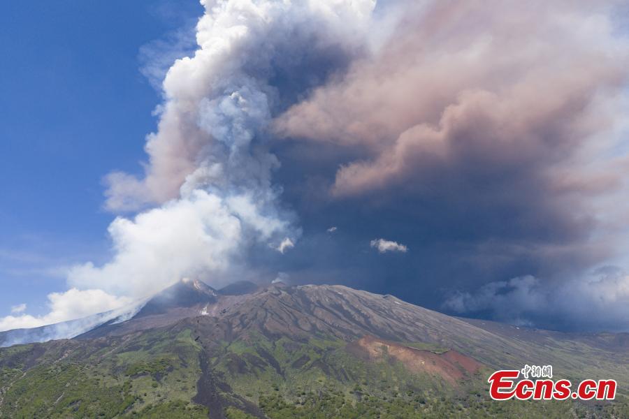Mount Etna erupts on the southern Italian island of Sicily, sending volcanic ash and hot gas into the sky, June 2, 2025. (Photo/Reuters)