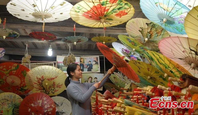 Photo shows oil-paper umbrellas in Fenshuiling Town of Luzhou City, southwest China's Sichuan Province. (Photo/China News Service)