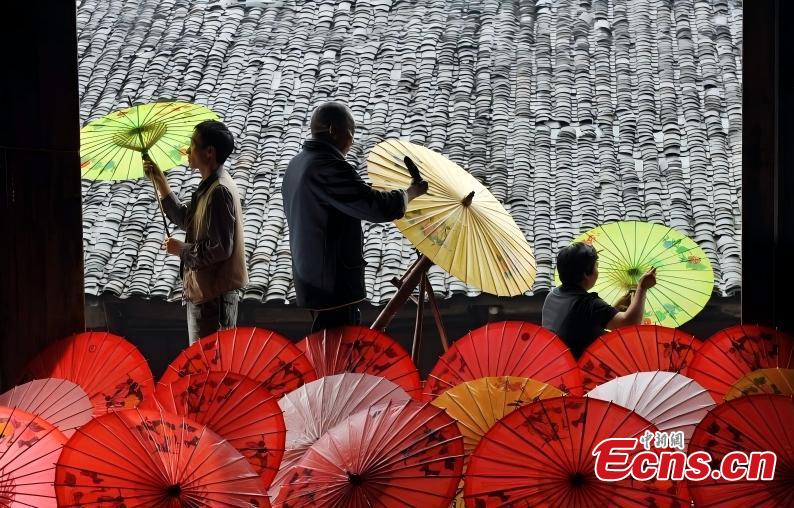 In Fenshuiling Town of Luzhou City, southwest China's Sichuan Province, the making of the oil-paper umbrella has been passed down for over 400 years, preserving techniques such as tung oil coating and stone-print painting. The traditional art?was listed as China's national-level intangible cultural heritage in 2008.