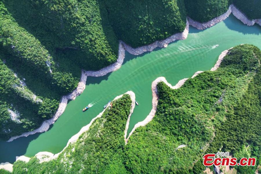 Shennong Stream resembles a green silk ribbon as it weaves through the mountains in Badong County, central China’s Hubei Province, June 17, 2025. (Photo: China News Service/ Jiao Guobin)