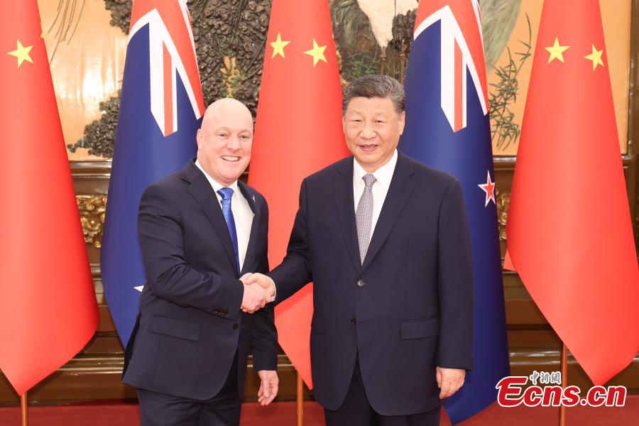 Chinese President Xi Jinping meets with New Zealand's Prime Minister Christopher Luxon, who is on an official visit to China, at the Great Hall of the People in Beijing, capital of China, June 20, 2025. (Photo: China News Service/Sheng Jiapeng)