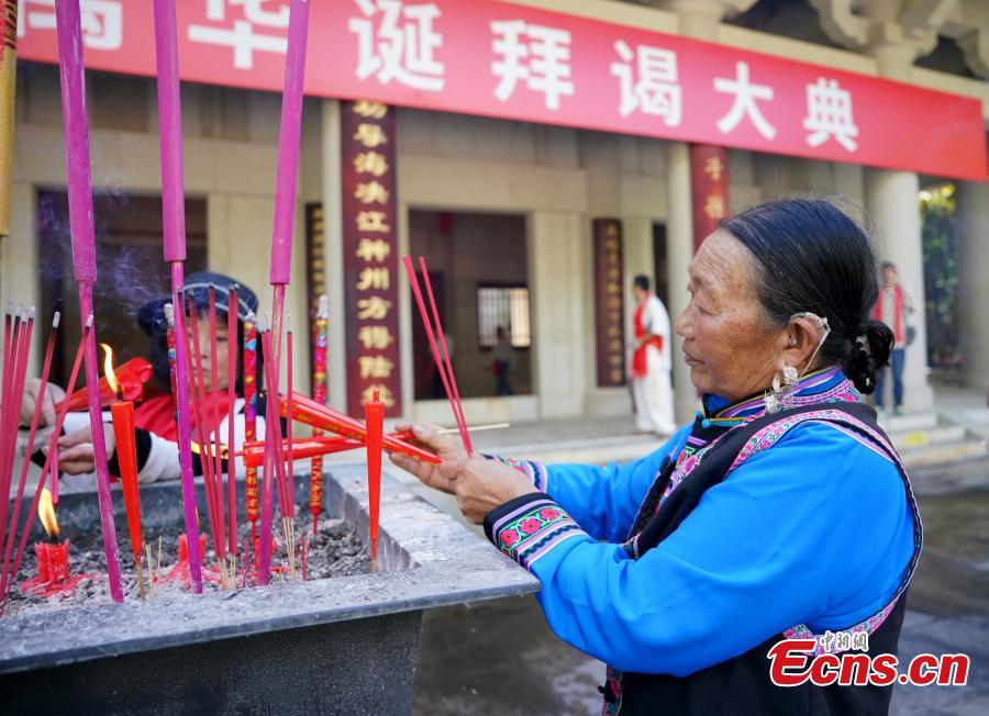A grandma offers incense at the ceremony to commemorate the birthday of Yu the Great in Wenchuan, Tibetan Autonomous Prefecture of Aba, southwest China's Sichuan Province, June 30, 2025. (Photo: China News Service/An Yuan)
