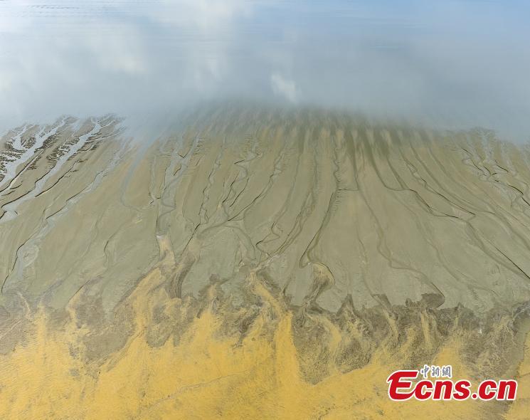 The Qiantang River's tides resembling trees shimmered under the blue sky Saturday in Hangzhou, Zhejiang province, revealing nature's breathtaking artistry and highlighting the river's unique ecological beauty.
