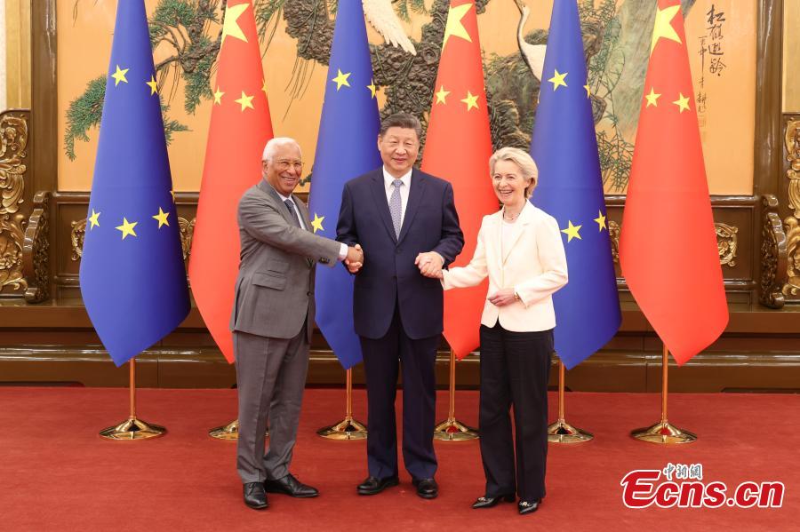 Chinese President Xi Jinping met with President of the European Council Antonio Costa and President of the European Commission Ursula von der Leyen in Beijing on Thursday.
