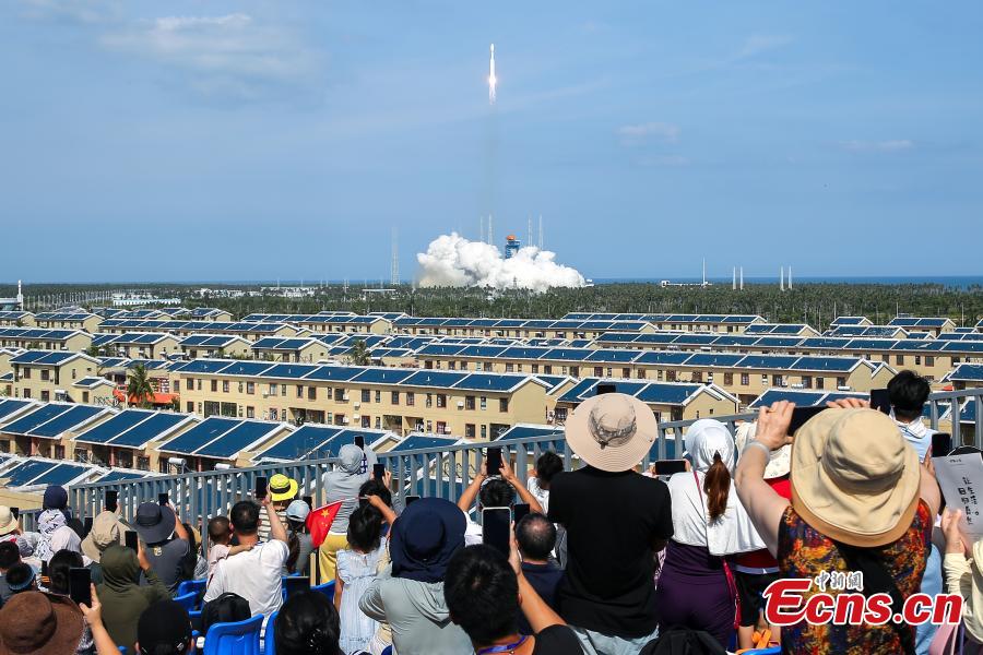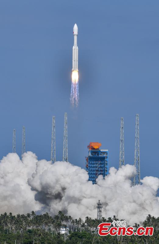 A Long March-8A carrier rocket carrying a group of low Earth orbit satellites, blasts off from a commercial spacecraft launch site in south China's Hainan Province, July 30, 2025. (Photo/China News Service)