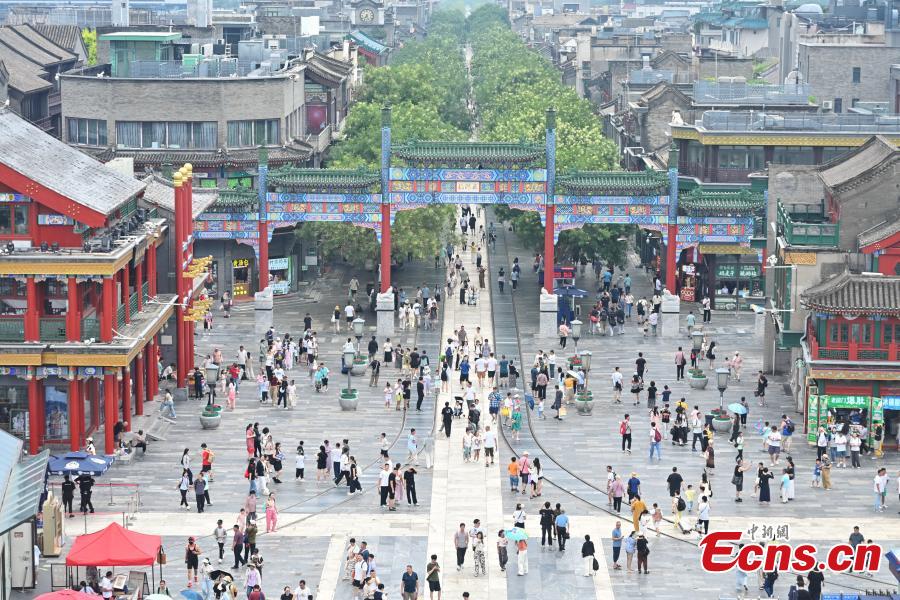 Photo shows the archway of Zhengyang Bridge and the bustling life of Qianmen Street. (File photo/China News Service)