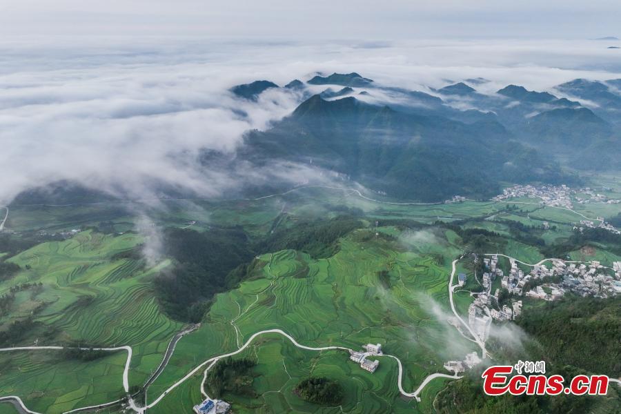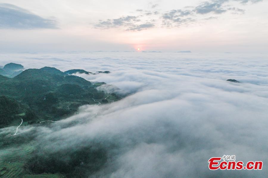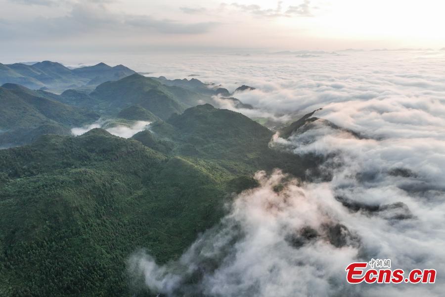 Photo taken on Aug. 6, 2025 shows breathtaking sea of clouds in Qiannan Buyi and Miao Autonomous Prefecture of southwest China's Guizhou Province. (Photo/China News Service)