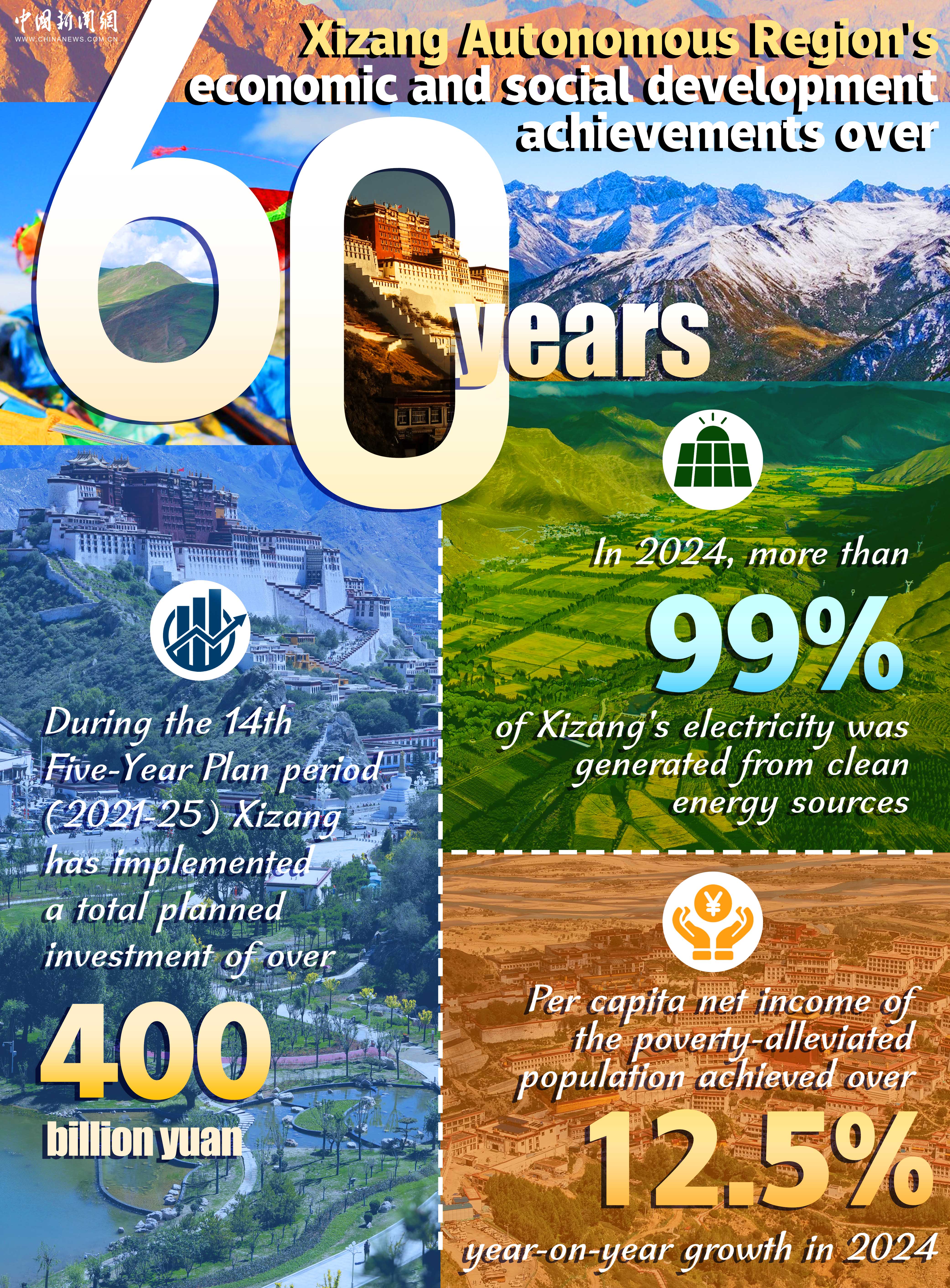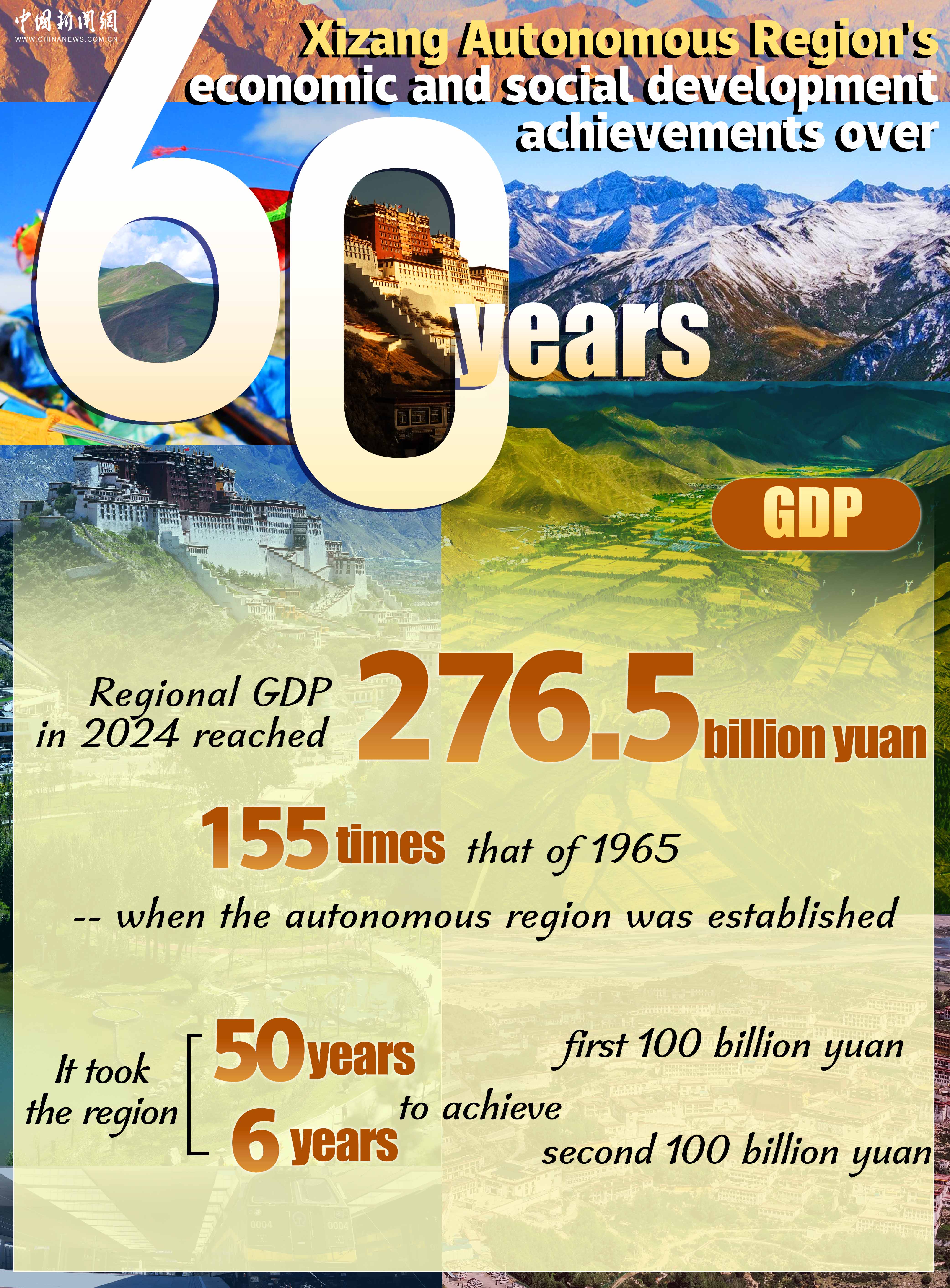 In Numbers: Xizang makes historic economic, social achievements over 60 years