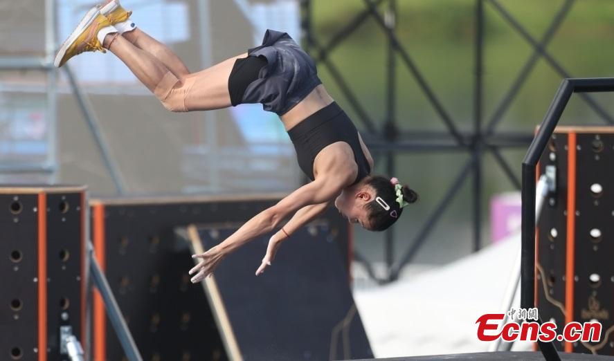 China's Shang Chunsong competes at the women's freestyle parkour gold at the World Games 2025 in Chengdu, southwest China's Sichuan Province, on Aug. 13, 2025. (Photo/China News Service)