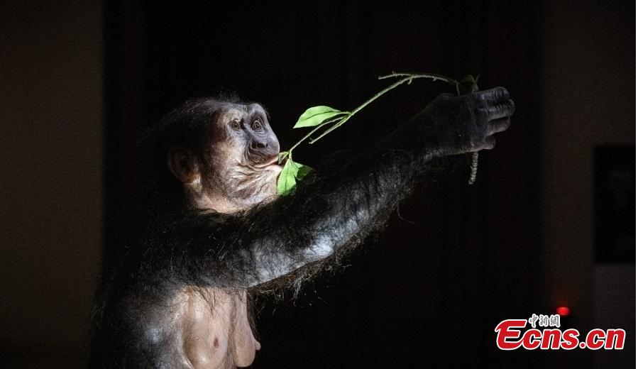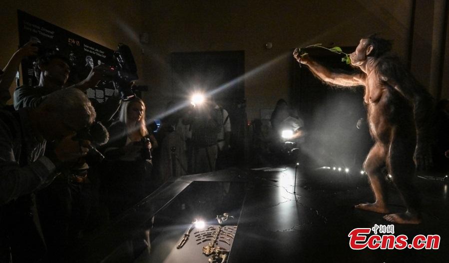 A reconstructed model of Australopithecus "Lucy" is displayed in the exhibition at the Czech National Museum on Aug. 25, 2025. (Photo/China News Service)