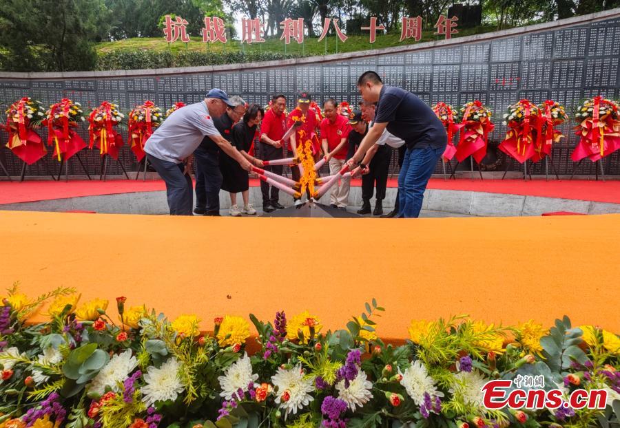 Representatives from various sectors light the eternal flame, symbolizing the inheritance of the spirit of resistance on Aug. 31, 2025 in Fuzhou, southeast China's Fujian Province. (Photo:China News Service/Lv Ming)