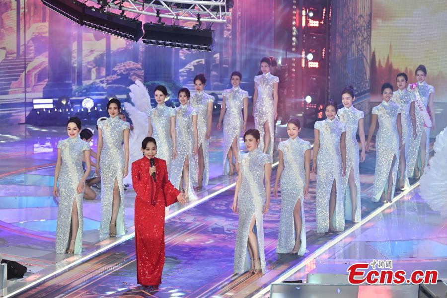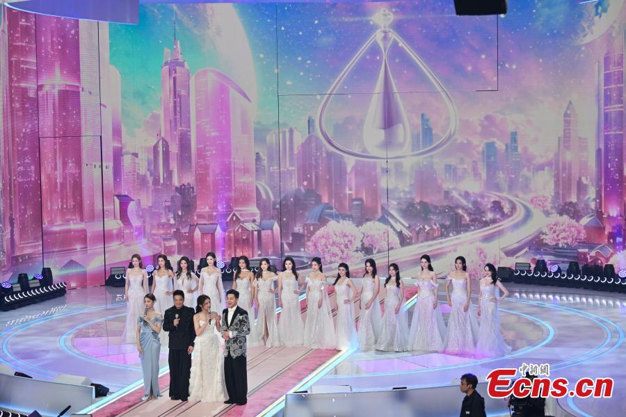 Stacey Chan, winner of the 2025 Miss Hong Kong Pageant, appears in the fashion segment at the 2025 Miss Hong Kong Pageant final on Aug. 31, 2025. (Photo: China News Service/Li Zhihua)