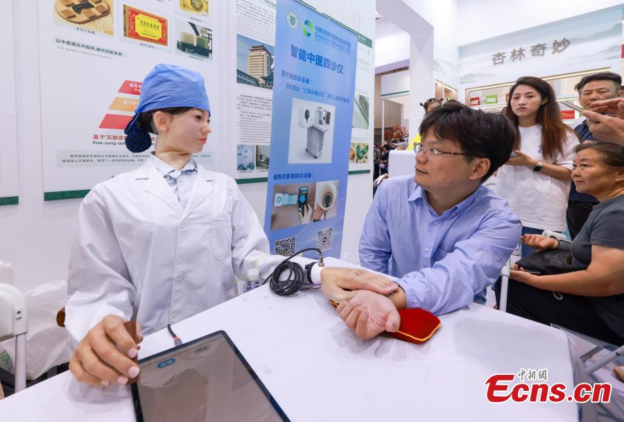 Visitors experience robot pulse-diagnosis and consultation service at the 2025 China International Fair for Trade in Services in Beijing on Sept. 14, 2025. (Photo:China News Service/Jia Tianyong)