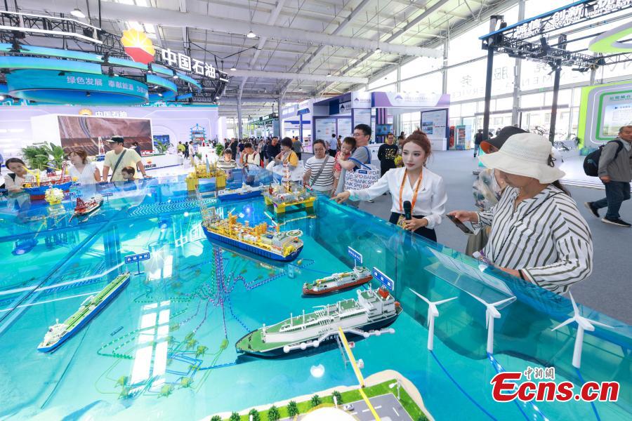 Visitors view a model of an offshore oil extraction cluster at the 2025 China International Fair for Trade in Services in Beijing on Sept. 14, 2025. (Photo:China News Service/Jia Tianyong)