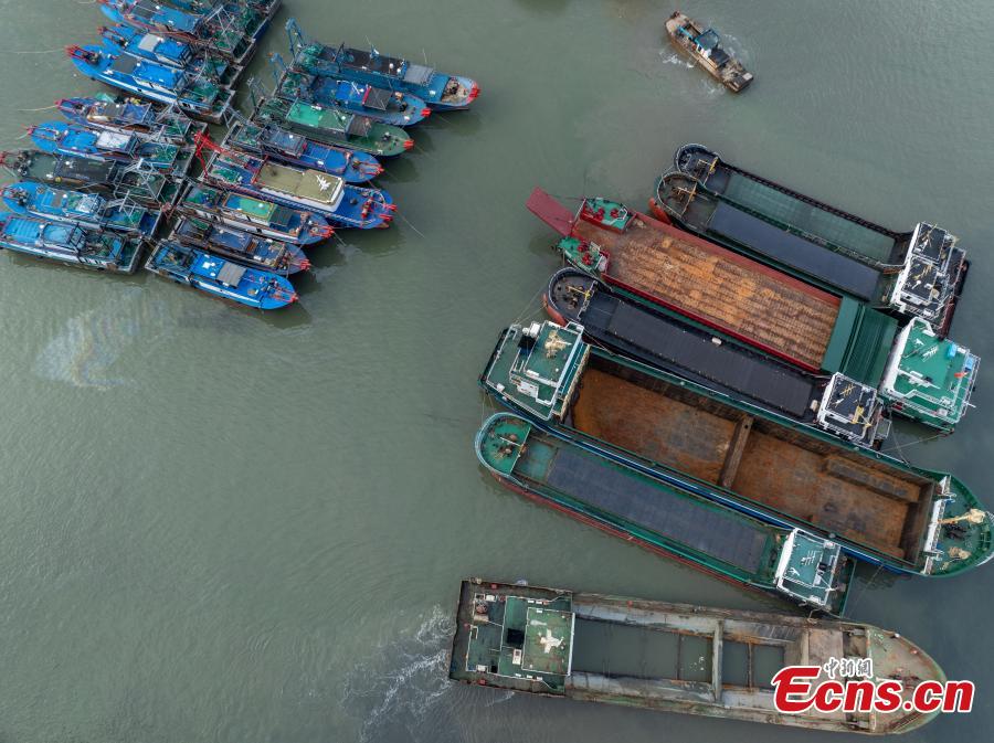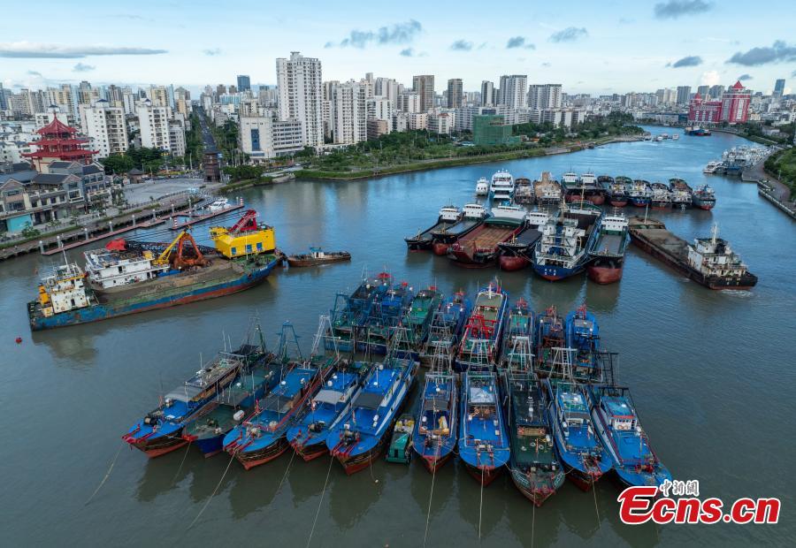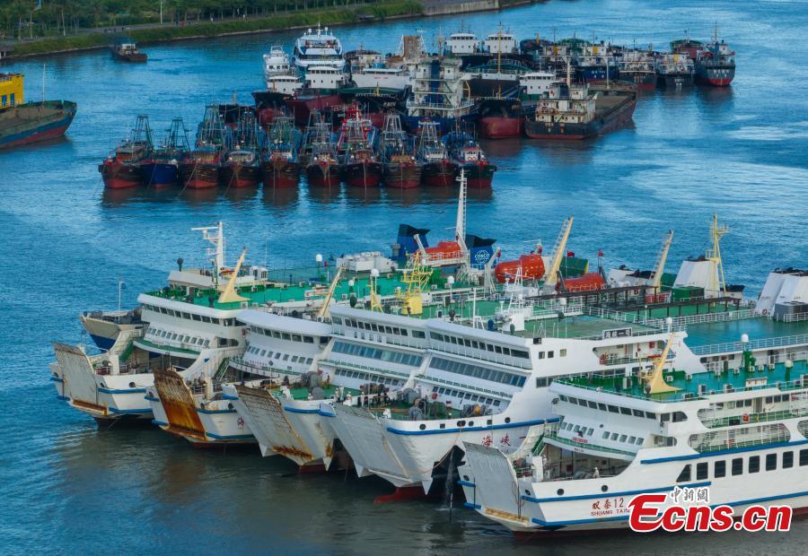 Vessels are moored in the Haidian River in Haikou City, south China's Hainan Province, to shelter from typhoon. (Photo: China News Service/Luo Yunfei)