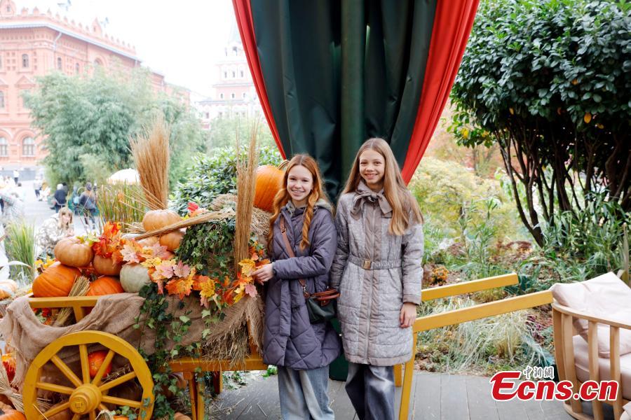 The Golden Autumn Festival is underway here, with thousands of pumpkins in various shapes and sizes, chrysanthemums and hay bales creating an autumn atmosphere where visitors can sample Russian delicacies and enjoy live music.