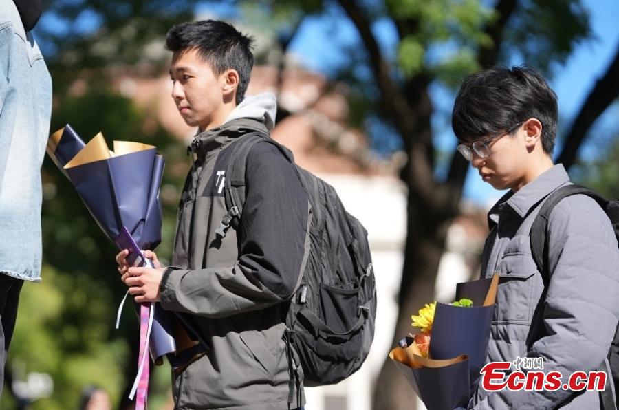 Students wait in line to enter the memorial room to pay deep tribute to Yang Zhenning at Tsinghua University Institute for Advanced Study On October 19, 2025. (Photo: China News Service/Jiang Qiming)