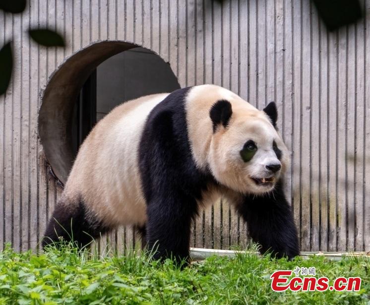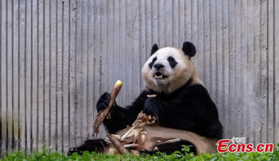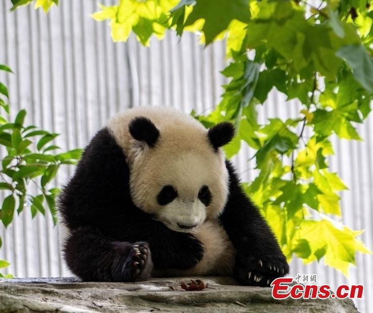 A giant panda enjoys autumn leisure at Shenshuping giant panda base of Wolong National Nature Reserve in southwest China's Sichuan Province on Oct. 21, 2025. (Photo/CFP)