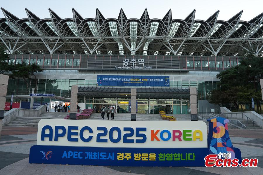 Photo taken on Oct. 27, 2025 shows the Gyeongju Train Station in the Republic of Korea (ROK). The 32nd APEC Economic Leaders' Meeting will be held in Gyeongju from Oct. 31 to Nov. 1, 2025. (Photo: China News Service/Liu Xu)