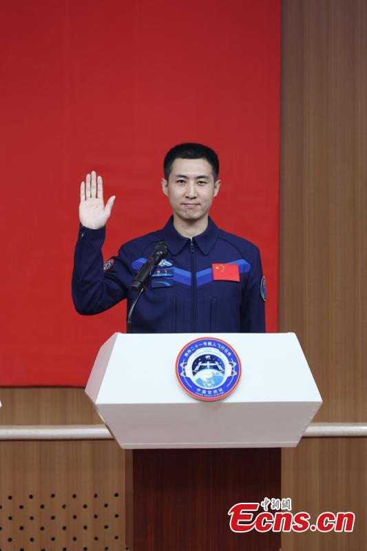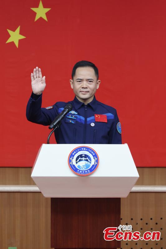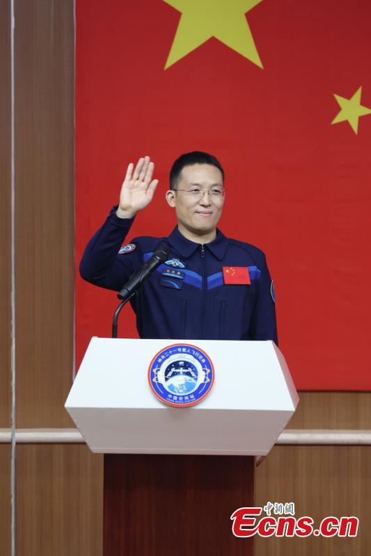 Chinese astronaut Zhang Hongzhang for the upcoming Shenzhou-21 spaceflight mission meets the press in Jiuquan Satellite Launch Center in northwest China on Oct. 30, 2025. Chinese astronauts Zhang Lu, Wu Fei and Zhang Hongzhang for the upcoming Shenzhou-21 spaceflight mission, met the press on Thursday.(Photo provided to China News Service)