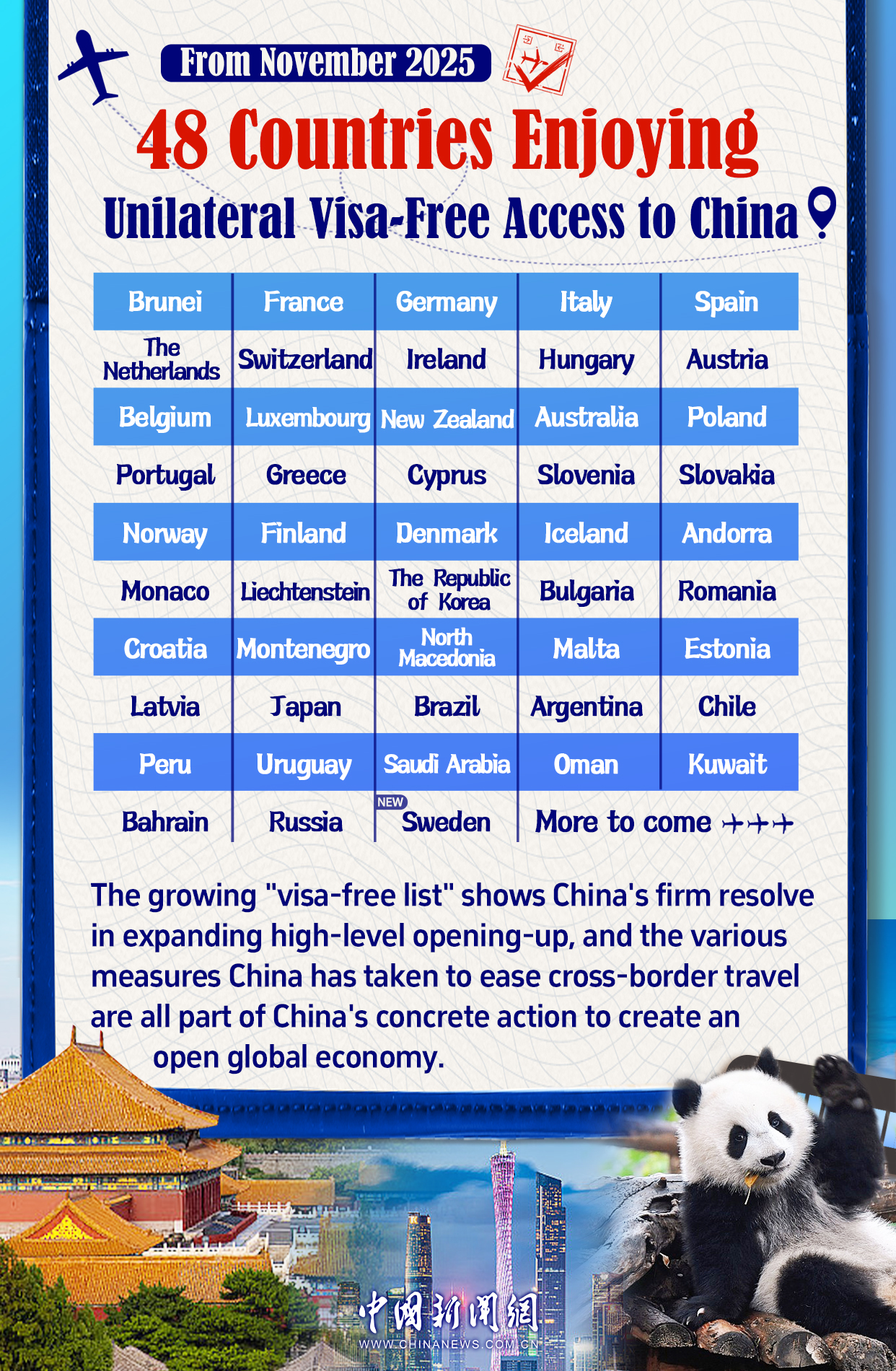 Citizens of 48 countries enjoy unilateral visa-free access to China