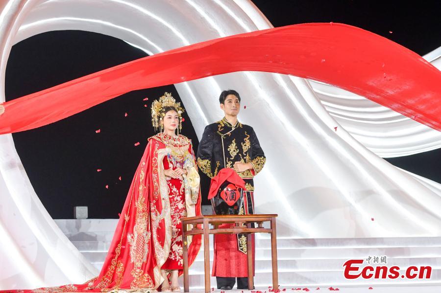 Photo taken on Nov. 23, 2025 shows a neo-Chinese style wedding show in Sanya, south China's Hainan Province. (Photo: China News Service/ Luo Yunfei)