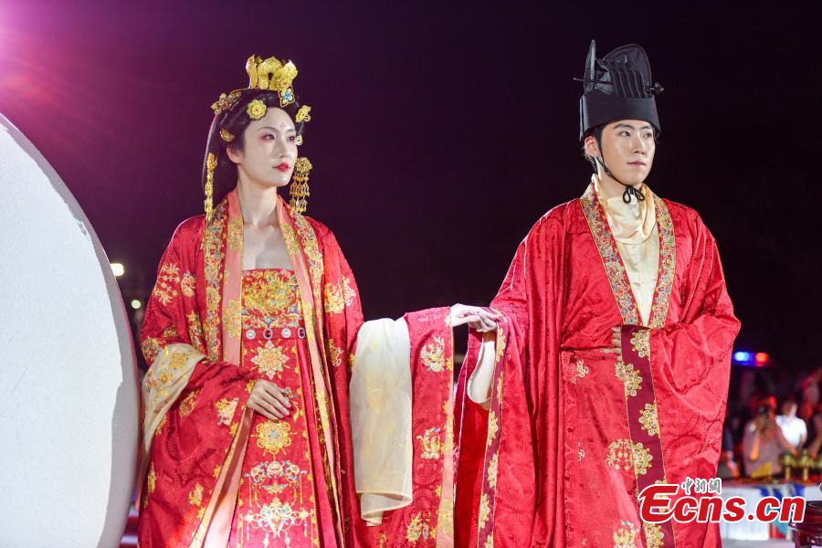Photo taken on Nov. 23, 2025 shows a Tang Dynasty-style wedding show in Sanya, south China's Hainan Province. (Photo: China News Service/ Luo Yunfei)
