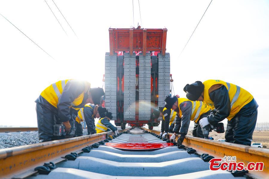 Track-laying for the Harbin-Yichun high-speed railway completed on Tuesday. The Harbin-Yichun high-speed railway is China's northernmost high-speed railway under construction.