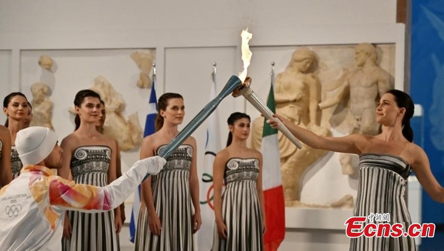 The Olympic flame for the 2026 Milan-Cortina Winter Olympics was ignited Wednesday at the historic site of Ancient Olympia, marking the start of its journey to Italy.