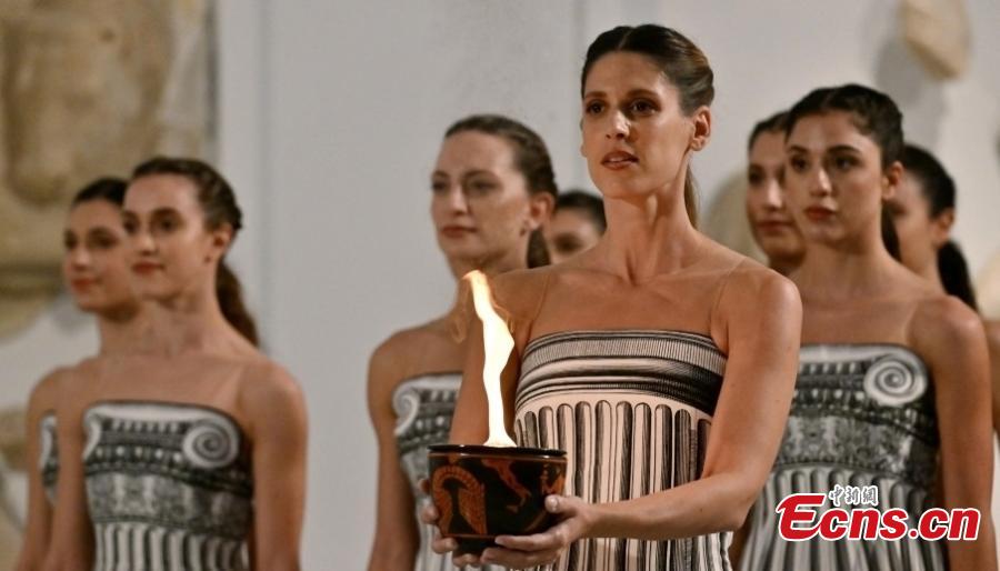 Photo taken on Nov. 26, 2025 shows the Olympic flame lighting ceremony for the Milan-Cortina 2026 Winter Olympic Games in Ancient Olympia, Greece, on Nov. 26, 2025. (Photo provided to China News Service)