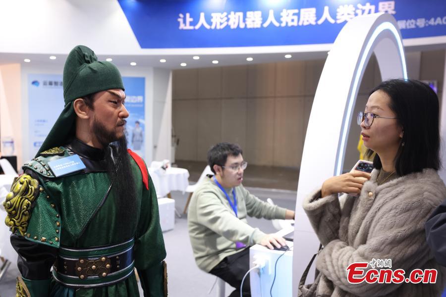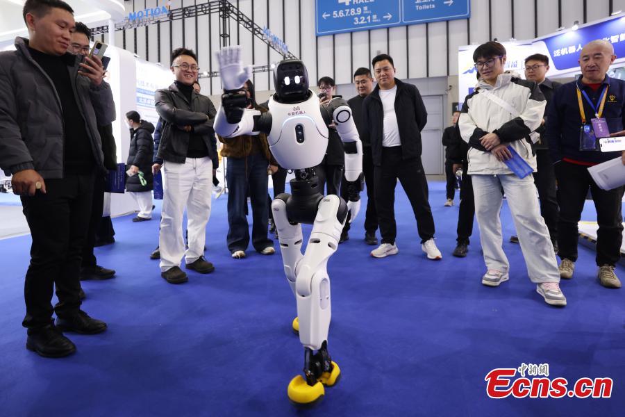 Humanoid robots on display attract the attention of the audience at the 2025 World Intelligent Manufacturing Expo in Nanjing City, east China's Jiangsu Province, Nov. 27, 2025. (Photo: China News Service/Yang Bo)