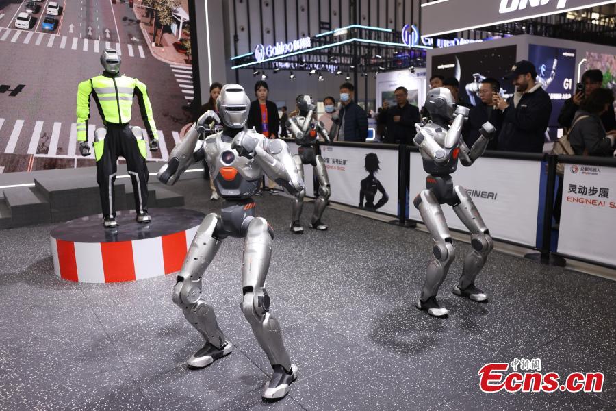 Humanoid robots perform Kung Fu at the 2025 World Intelligent Manufacturing Expo in Nanjing City, east China's Jiangsu Province, Nov. 27, 2025. (Photo: China News Service/Yang Bo)