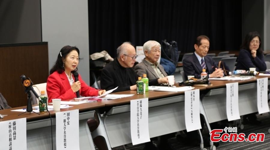 Kumiko Haba (first from left), professor emeritus at Aoyama Gakuin University, speaks at a press conference in Tokyo on Dec. 8, 2025. (Photo: China News Service/Zhu Chenxi)