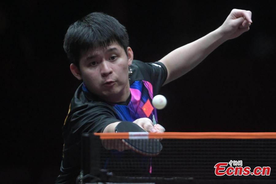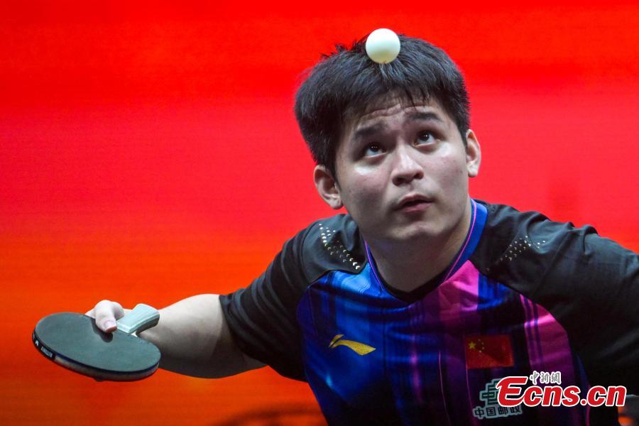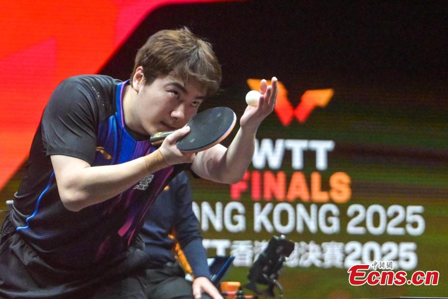 Chinese paddler Liang Jingkun competes in the?Men's Singles at the World Table Tennis (WTT) United States Smash in Hong Kong on Dec. 11, 2025. (Photo: China News Service/Chen Yongnuo)