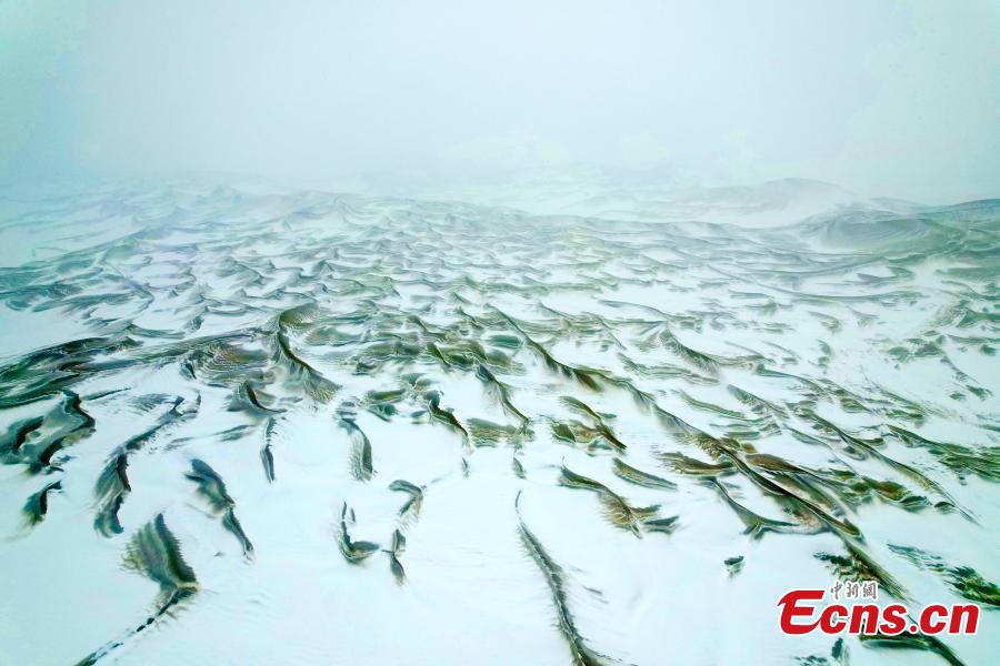 Kum Tag Desert in northwest China's Xinjiang Uygur Autonomous Region welcomes its first snowfall this winter on Dec. 11, 2025. (Photo provided to China News Service)