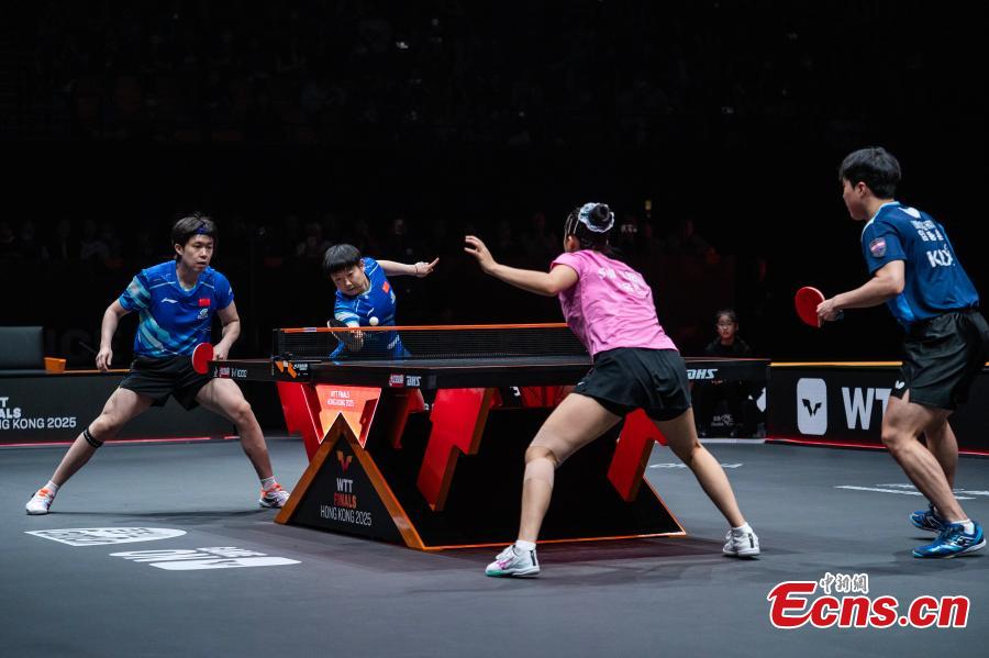 Wang Chuqin (right) competes during the mixed doubles final match at the WTT Finals Hong Kong 2025 in Hong Kong, south China, Dec. 13, 2025. (Photo: China News Service/Hou Yu)
