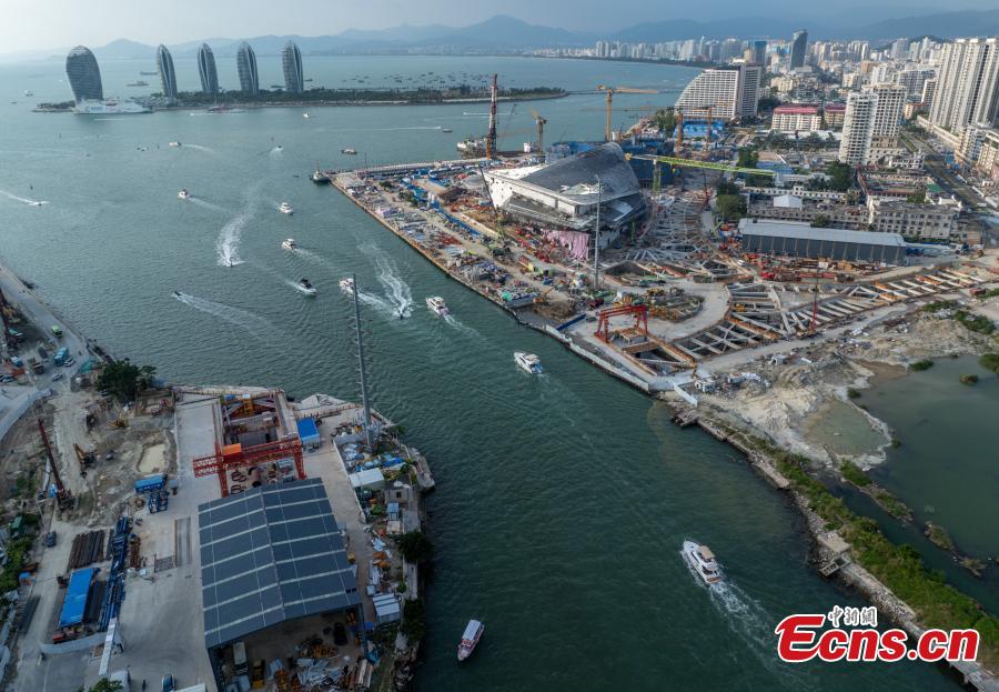 Photo taken on Nov. 22, 2025 shows an aerial view of Sanya River estuary passage project in Hainan Province. (Photo: China News Service/Luo Yunfei)