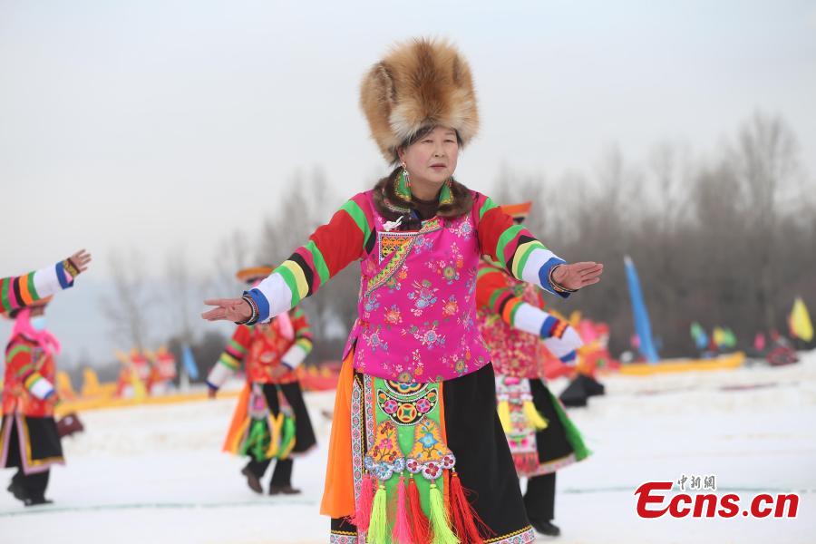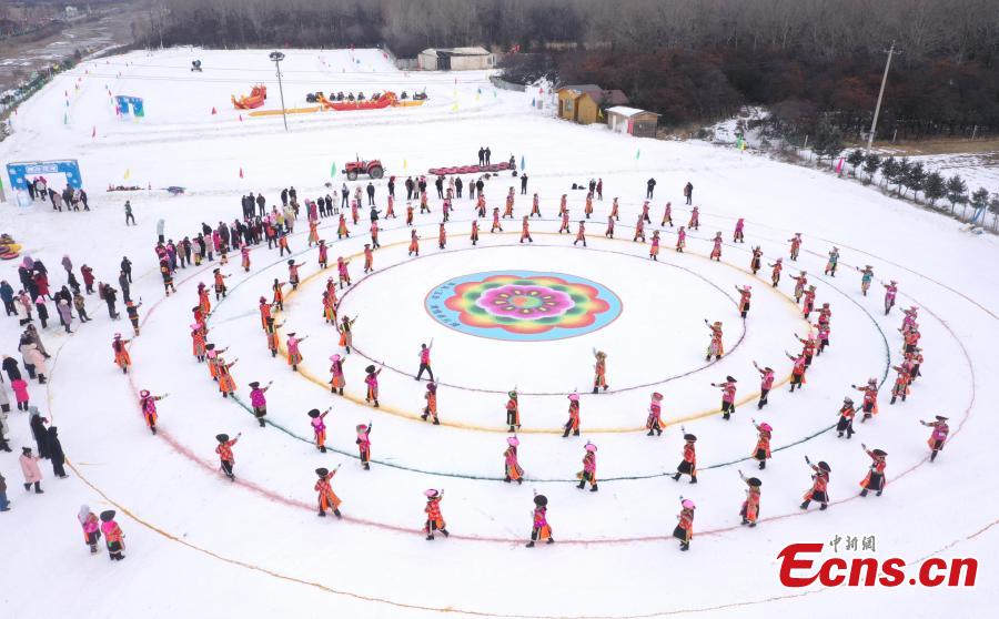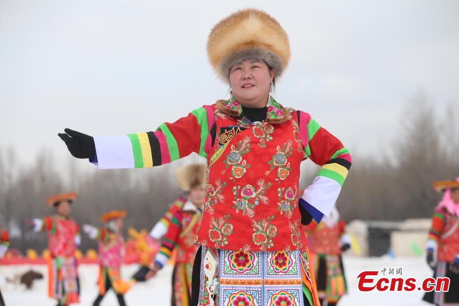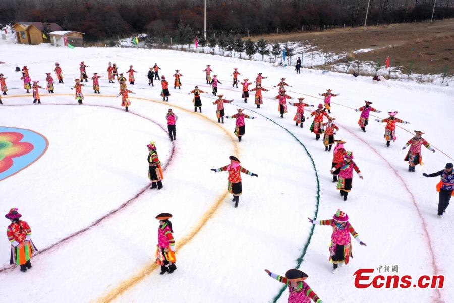 People dressed in their traditional attire perform the Anzhao dance in Huzhu Tuzu Autonomous County, Qinghai Province on December 30, 2025, to pray for a bountiful harvest and good fortune in the New Year. (Photo: China News Service)
