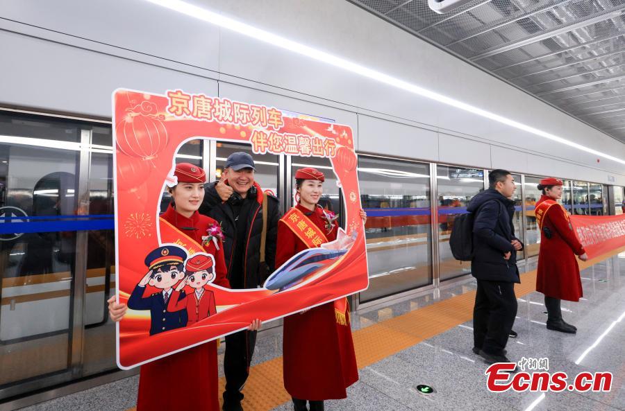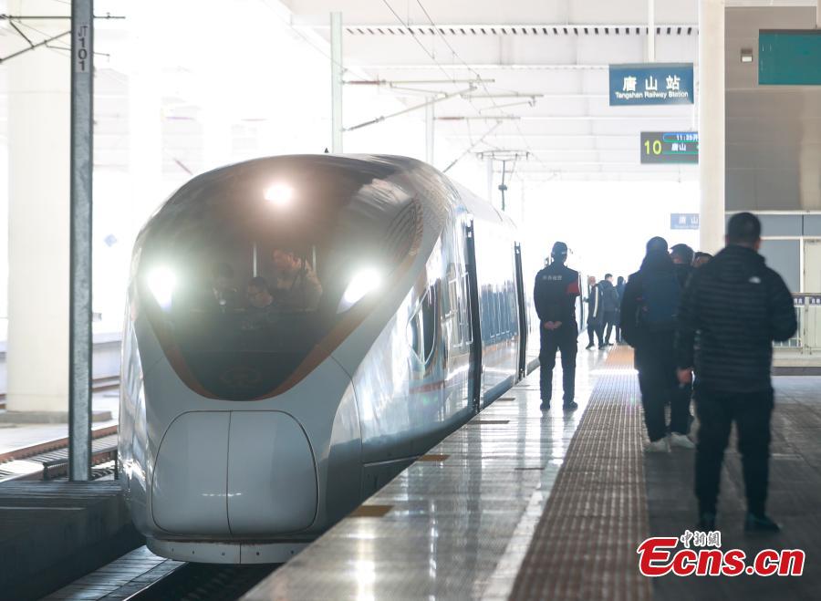 A high-speed train departing from Tongzhou of Beijing stops at the Tangshan Railway Station in Tangshan, north China's Hebei Province, Dec. 30, 2025. (Photo: China News Service/Jia Tianyong)