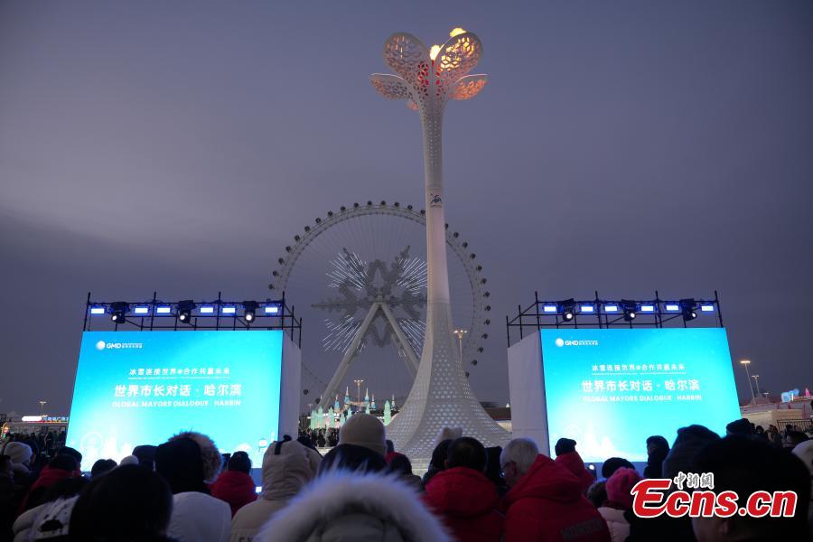 The opening ceremony of the "Global Mayors Dialogue in Harbin" held in Harbin, northeast China's Heilongjiang Province, Jan. 6, 2026. Mayors, deputy mayors and mayoral representatives from cities in nations including Canada, Finland, Germany, Greece, the Republic of Korea, and Thailand attends the event, engaging in in-depth exchanges on practical approaches to developing the ice and snow economy. (Photo provided to China News Service)
