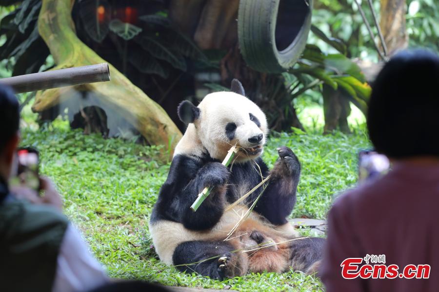 Giant panda Cai Tao attracts visitors at Taman Safari Indonesia (TSI) in Bogor, West Java, Indonesia on Jan. 6, 2026. (Photo: China News Service/Li Zhiquan)