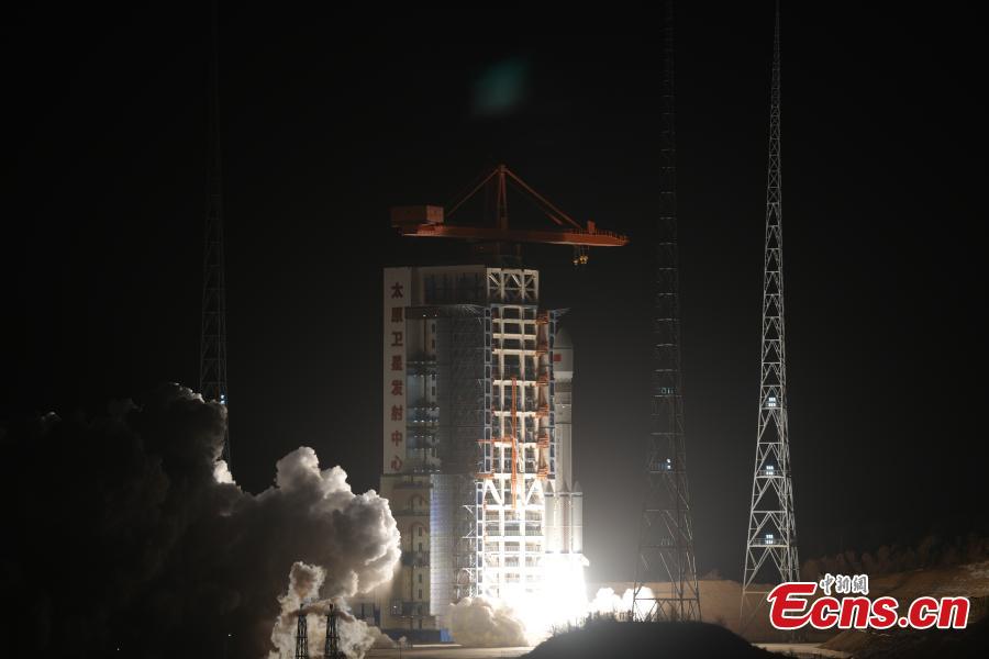 A modified version of the Long March-6 rocket carrying the Yaogan-50 01 remote sensing satellite blasts off from the Taiyuan Satellite Launch Center in north China's Shanxi Province, Jan. 13, 2026. Launched at 10:16 p.m. (Beijing Time), the satellite has entered planned orbit. The launch was the 624th flight mission undertaken by the Long March rocket series and marked China's first successful orbital launch of 2026. (Photo by Wang Yapeng)