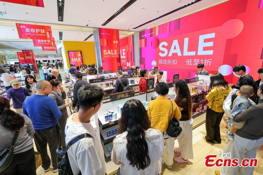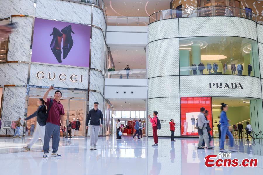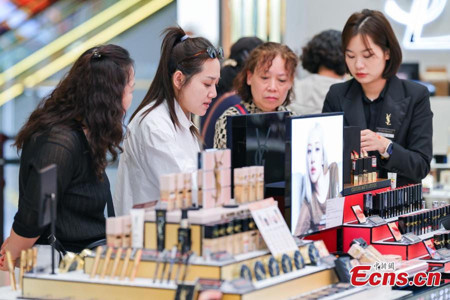 Customers shop at the CDF Haikou International duty-free shopping complex in Hainan Province. (Photo: China News Service/Luo Yunfei)