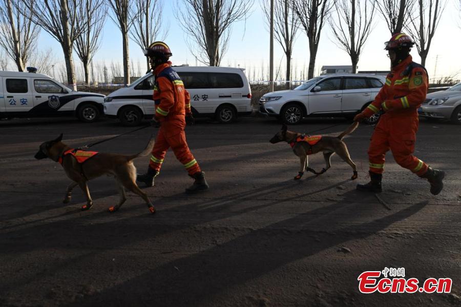 Rescue dogs take part in search and rescue operations at the site of an explosion of Baogang?United?Steel plant in Baotou, north China’s Inner Mongolia Autonomous Region, Jan. 19, 2026. (Photo: China News Service/Liu Wenhua)