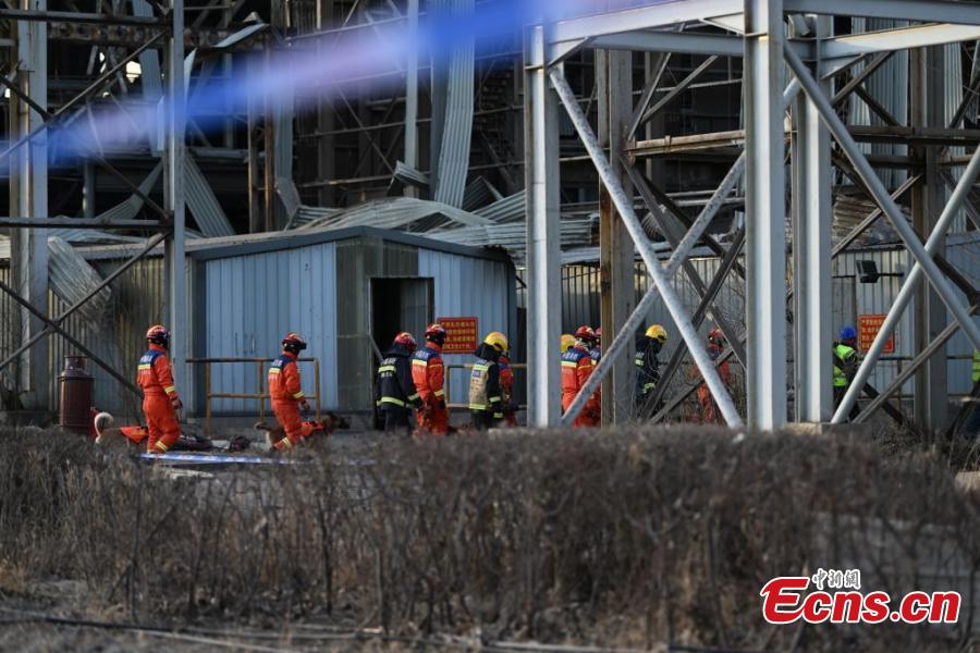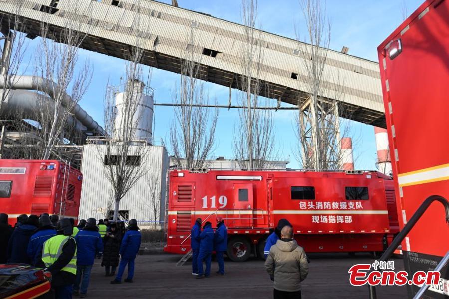 Firefighters, accompanied by rescue dogs, carry out rescue operations at the site of an explosion at a plate plant of Baogang?United?Steel in Baotou, north China’s Inner Mongolia Autonomous Region, Jan. 19, 2026. (Photo: China News Service/Liu Wenhua)