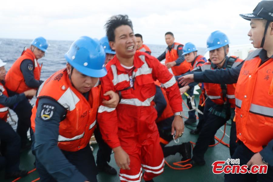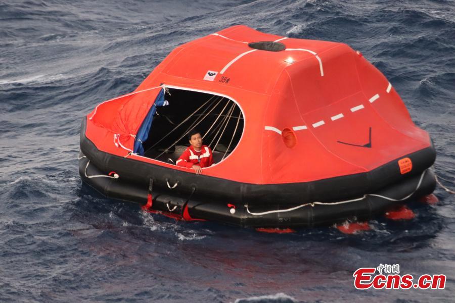 Philippine cargo ship crew members are recused by the China Coast Guard from waters near Huangyan Dao, Jan. 23, 2026. (Photo provided to China News Network)