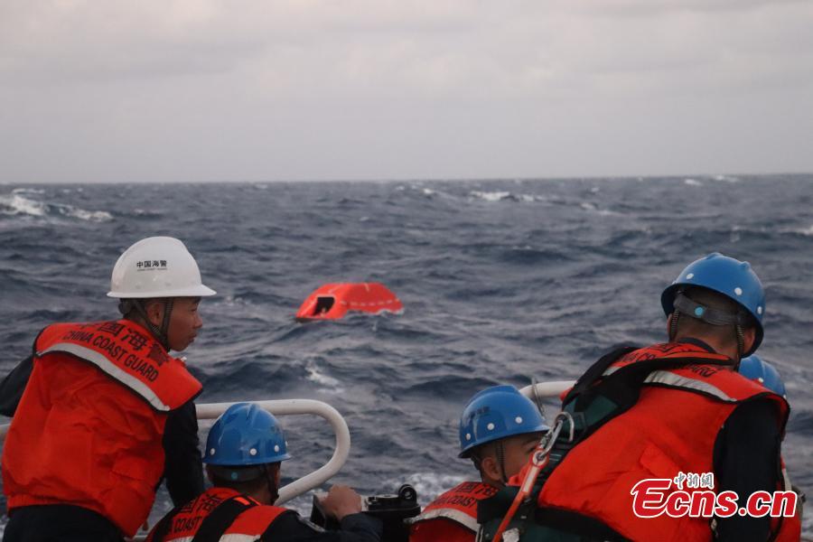 It received a report at 1:34 a.m. from the maritime search and rescue center of Sansha City, Hainan Province, that a foreign cargo vessel had overturned 55 nautical miles northwest of Huangyan Dao, with 21 Filipino crew members on board. More rescue efforts are still ongoing.
